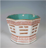 • 明素三彩贴狮首狮钮盖双耳三足陶香炉